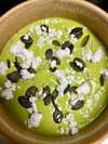 velouté froid de petits pois, citron et menthe, crème de soja, graine de tournesol et de courge, fêta végétale